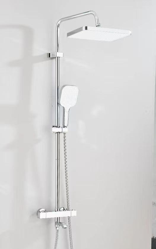 N012 chrome thermostatic shower set ,and square rose ,and round pole ,pvc hose