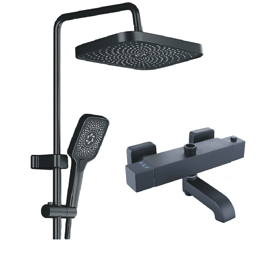N012C black thermostatic shower set and square rose ,round rose ,pvc hose